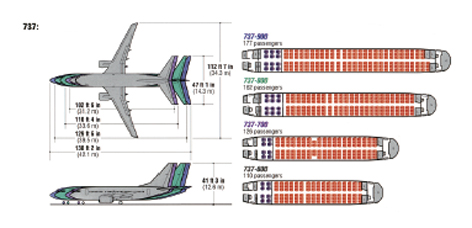 但是,波音 737飞机是19645月开始研制,19674月原型机首次试飞。波音 737系列机的基本技术毕竟已经 40 多年了,波音公司原计划在推出波音 787 客机之后,有意以波音 787 的基本技术研制新一代的单通道客机,即新的737NG系列机。它采用新一代涡扇发动机,可能用更大的复合材料机身段,或将设计成采用全复材的机体,复材用量比例高达70~80%。使用同一驾驶舱,将共享一种机翼,机身将有两个宽度可供选择,可有三种不同类型的机身,如五排座,六排座,甚至双通道2-3-2排座,如图7所示,以此构成低成本模块化飞机(Low Cost Modular Aircraft)。波音公司确认,两种早期原型机的图已画出,一种是宽体、双发和双通道,另一种是双发、短程、单通道喷气客机(a wider, twin-aisle version and a shorter, single-aisle jet)。并说将是碳纤维机体,更高的燃油效率和更环保,将在下一个十年的中期投入运行。