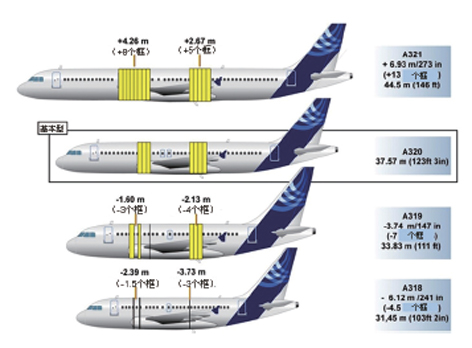 A320系列飞机(图8所示)是欧洲空客公司研制生产的双发单通道中短程150179座级客机,其客舱(宽3.70米)比一般的双发单通道客机要宽些。从技术上说,因空客A320系列客机采用了通用设计,所以一般“A320”单指最初的中型客机,但是经常也代指整个A320系列:A318A319A320A321
