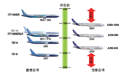 波音商用飞机公司表示:我们的发展重点,是补充和延伸今天的双通道宽体客机家族,意味着我们提供全系列的飞机座位数和相匹配航程的需求市场。波音的这些举措都旨在遏制空客A350 XWB竞争的上升势头。