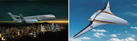对更远的未来、如2030-50年后新型大飞机关键技术的创新和探索工作应作些什么?美国NASA和空客公司都有设想。大飞机仍然是长途洲际旅行的必要交通工具,所以研究具有超声速飞行能力的未来大飞机是一项迫切而艰巨的任务。同时须强调的是,考虑到对环境的影响,亚声速超绿色飞机研制是当代航空制造业的最重要任务,如图18 所示为空客公司概念飞机和NASA翼身融合体概念飞机的数字化模型。