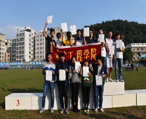 本次运动会上,我院运动健儿们激情飞扬、奋力拼搏,安全151班徐玉成同学以35.68米的骄人成绩,打破校纪录一举夺下男子标枪冠军;采矿152班陈国强同学获得标枪季军和男子铅球冠军;我院安全153班马敬同学夺得铅球项目的第二名;男子跳高比赛中,安全153班冯子豪同学取得了第三名的优秀成绩;采矿142班黄士银同学获得男子组100米第二名的优异成绩;4*100接力比赛(男子组)荣获第三名;团体赛三人板鞋(女子组)、六人七足和掷沙包项目均分获第二名,整个场面热闹非凡。