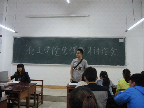 2014年5月21日晚,教师党员李静老师、学生党员刘松林同学及化工学院全体学生入党积极分子在3教105教室举行了党课学习讨论会。