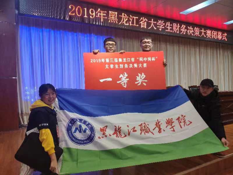 10月12日,在黑龙江省“网中网杯”大学生财务决策(高职组)大赛中,我院17级会计专业学生张索兵、李化雪、史佳楠、鞠国鹏组成的williamhill官方网站代表队荣获一等奖。教学院长张振和与王璐老师负责带队,杨继杰、王欢任指导教师。