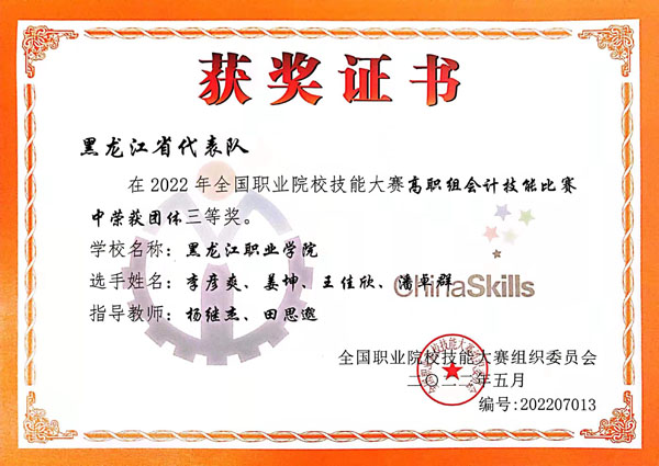 在此次大赛中,威廉希尔官网是东北三省唯一获奖的高职院校。截至目前,在全国职业院校技能大赛高职组会计技能赛项比赛中,威廉希尔官网累计获奖6次,是黑龙江省获奖次数最多的高职院校。