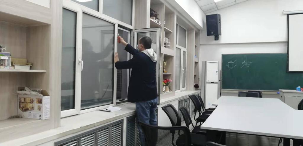 检查重点为教学设备使用正常,排查给排水设施及水暖管线无滴、冒、跑、漏隐患,用电设备课后是否是关闭状态,消防设施是否完好,实训室门窗是否关闭是否完好。检查过程中及时对清华楼1206机房、工坊楼105实训室部分窗户进行了加固处置,对38个水基灭火器和6个干粉灭火器进行压力检查并确保其安全使用。