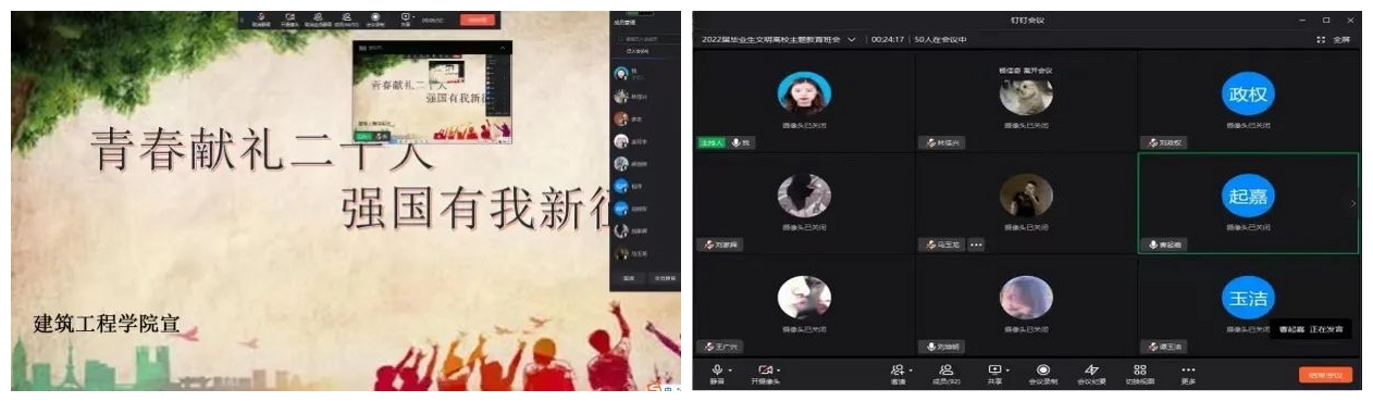 为贯彻落实全国高校思想政治工作会议精神,落实立德树人根本任务,鼓励毕业生全面提炼大学生活,自信走向社会,切实保障毕业生安全离校、文明离校、和谐离校,建筑工程学院于2022年5月16-20日分别开展了以“青春献礼二十大 强国有我新征程”为主题的理想信念教育、安全文明教育和就业观教育活动。
