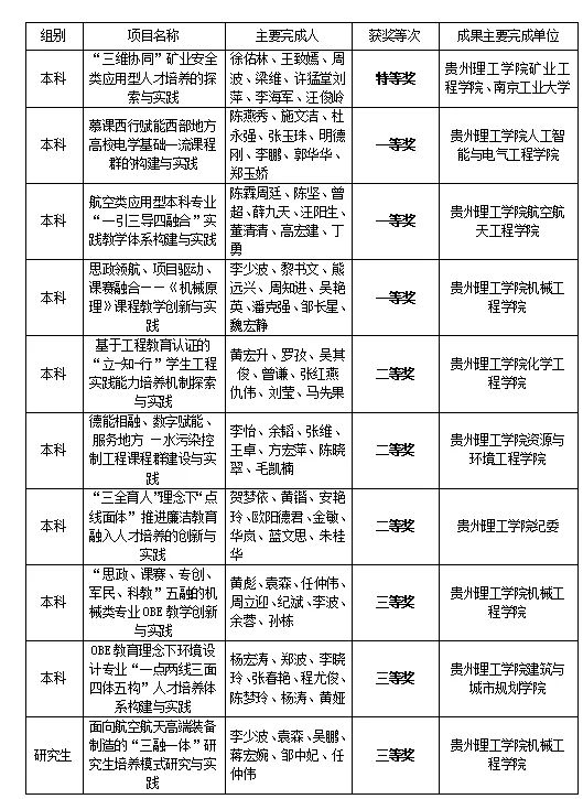 近期,省教育厅公布了2024年贵州省高等教育省级教学成果奖获奖名单,pp电子10个项目获奖,其中:获本科教学成果奖9项(特等奖1项、一等奖3项、二等奖3项、三等奖2项),获研究生教学成果奖三等奖1项。