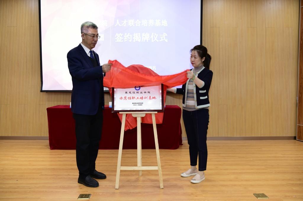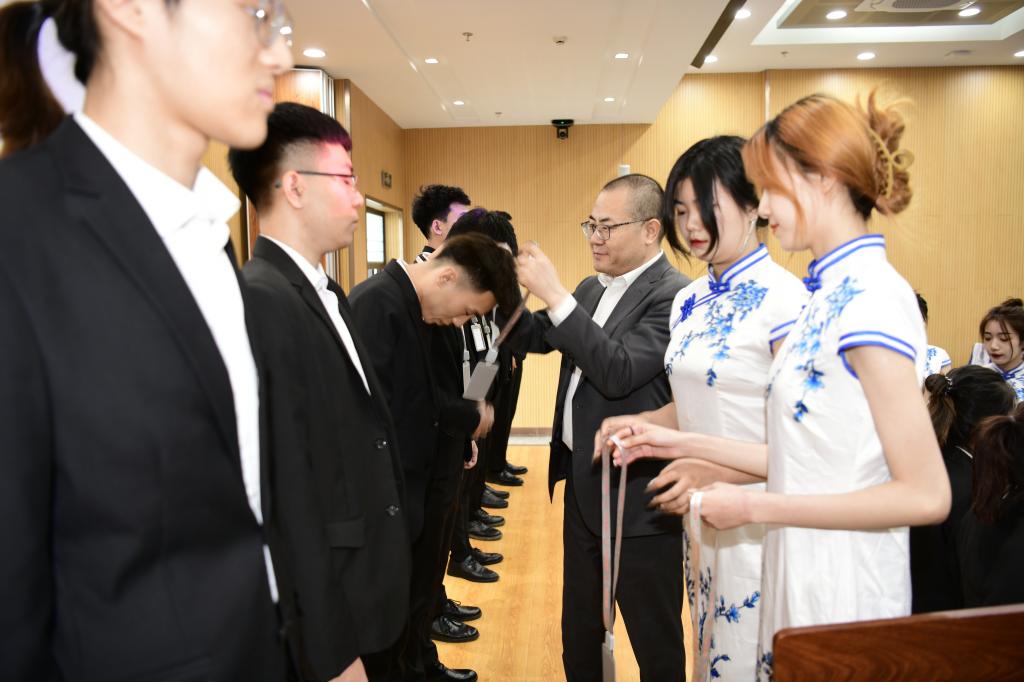 接着,融创集团副总裁杨静、住宅运营管理中心总经理吉相海、人力资源部总监张东浩分别致辞。随后,王利文校长与张东浩总监签署校企产教融合战略合作意向书,王利文校长与杨静副总裁共同为“融创服务集团与williamhill官方网站示范性职工培训基地”揭牌。20位来自工管学院的学生入职融创集团担任管培融耀生并在会议现场进行入职宣誓。他们共同宣誓传承龙职精神与铺路石文化,当好企业铺路石,为实现融创集团更加辉煌的明天而努力奋斗。集团住宅运营管理中心总经理吉相海、哈尔滨公司总经理刘树荣为融耀生们授予了员工工牌。之后为期两天的“优秀管家培训”正式开始,来自融创集团的47位管家接受培训,由校企双方共同指派讲师,讲授中国现代服务业发展趋势及物业服务等级标准等内容。