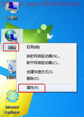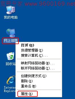 1、右键单击“网上邻居”,左键单击“属性”。(图1)