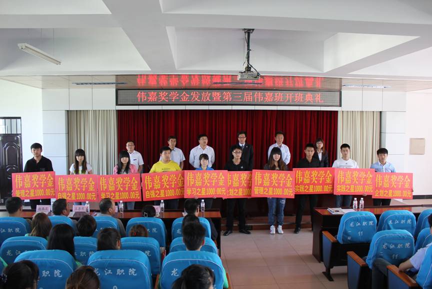会议首先进行了伟嘉班奖学金发放仪式,院长助理石明杰回顾了集团与伟嘉集团的合作历程,对获得奖学金的同学表示祝贺,对新加入伟嘉班的同学表示欢迎。集团内各院校每年都有大批毕业生到伟嘉集团工作,今年伟嘉集团设立伟嘉奖学金,这标志着校企进行了更深层次的合作,对减轻大学生的就业压力,提高就业率有着深远的意义。