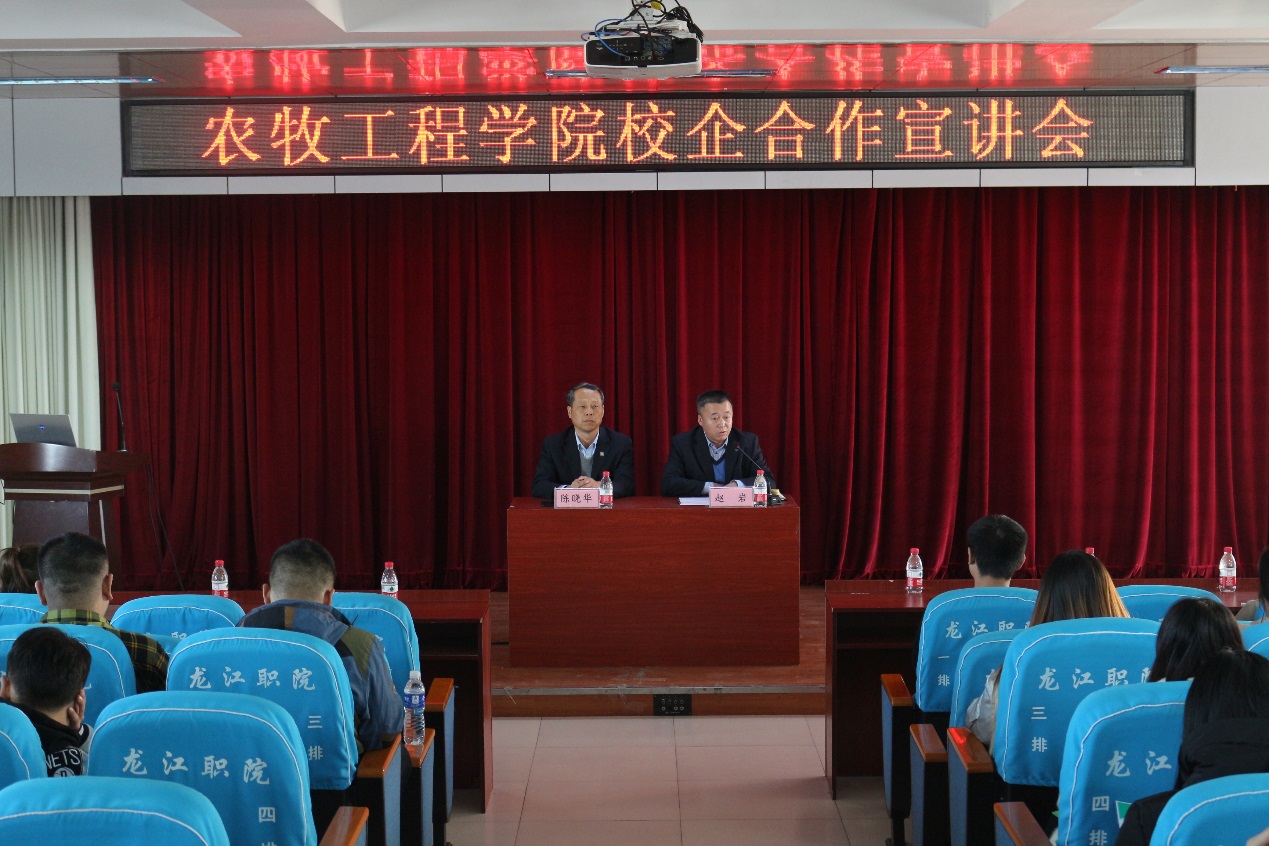 11月15号下午13点30分,williamhill官方网站农牧工程学院实习就业宣讲会在2号教学楼6楼会议室隆重召开,参加本次宣讲会的企业有黑龙江正邦农牧有限公司、双胞胎(集团)有限公司、新希望六和股份有限公司、正大集团-黑龙江正大实业有限公司、泰来县佳和农牧有限公司、北京米乐动物医院有限公司共6家企业。williamhill官方网站农牧工程学院院长陈晓华、副院长赵岩出席本次宣讲会,宣讲会由赵岩主持。